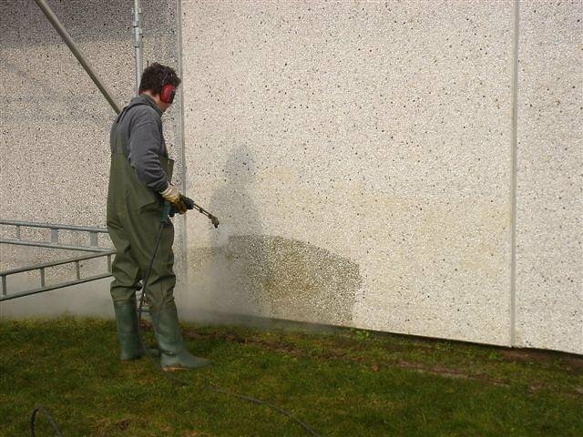 Dette problem kan i mange tilfælde klares med almindelig højtryksrensning, men overflader som er svært smudset, ru og ujævne i overfladen, kan det være nødvendigt at påføre facaden en 'sæbe' (kemisk afrensning), for at løsne op for smudset og komme i bund med mikroorganismerne. Herefter hedvandsrenses facaden med 95-105 gr. varmt vand.