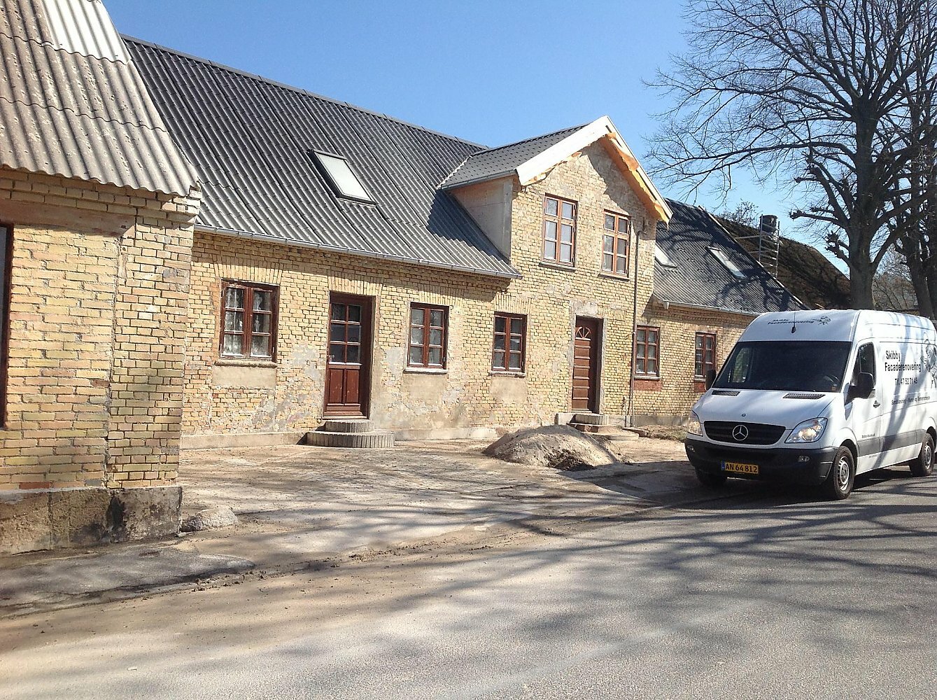 Sandblæsning af facader foregår med ovntørret kvartssand. Alt efter overflade som ønskes fjernet og underlaget, som kan være alt fra murersten, gasbeton, beton osv. vælger vi kornstørrelse på sandet, lufttrykket på kompressoren og dysestørrelsen.